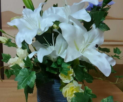 百合の花が好きな父へ父の日に、長く供えてもらえるよう、シルクフラワーのカサブランカを。たくさんの想いを込めて【CT触媒】カサブランカの豪華なアレンジ【キャン…