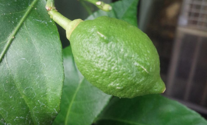 ベランダの小さなレモンの木。花が咲いて、今年はどうかな~ とのぞいたら小さなレモンの形、ちっさなレモンの実発見! ありがとう~…